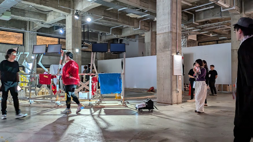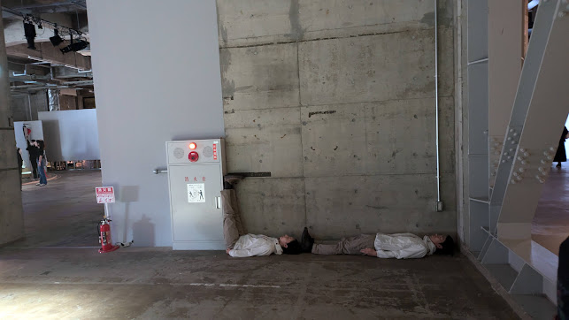 境界なく連続する巨大な作品群。不意に遭遇するパフォーマンス。移動し交錯するパフォーマーと鑑賞者。
